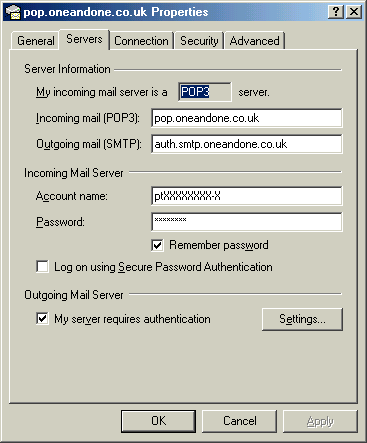 cheynegang.co.uk e-mail account, the Incoming mail server is a POP3 server, this is the default server selected in Outlook Express, however if this drop down menu option has been changed click on it and change it to POP3.